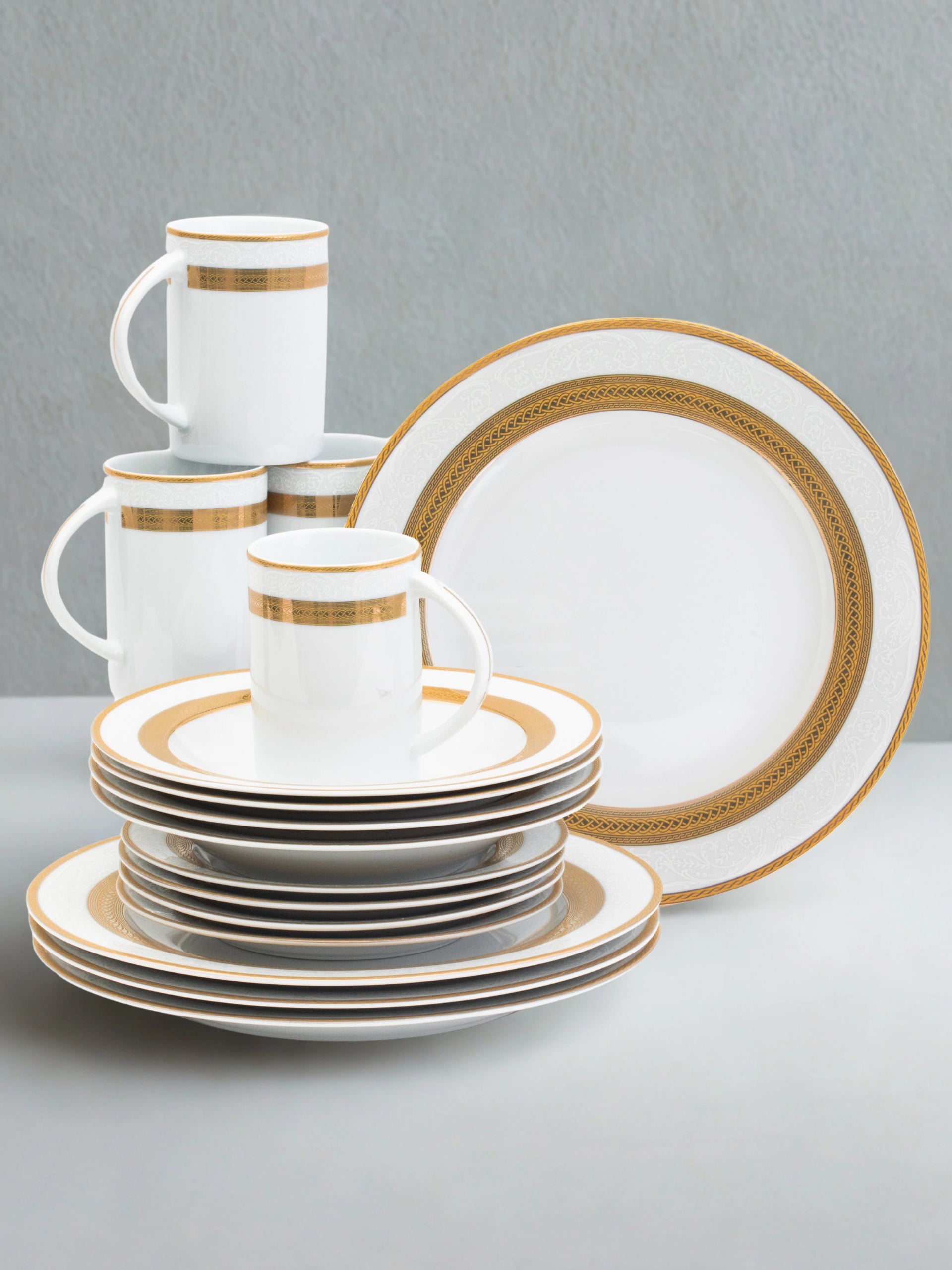 60 Piece Vintage Dinnerware Sets - Service for 12 Plates, Mugs, Bowls - White and Gold Design Dishware for Kitchen Table, Everyday Dining or Formal Use