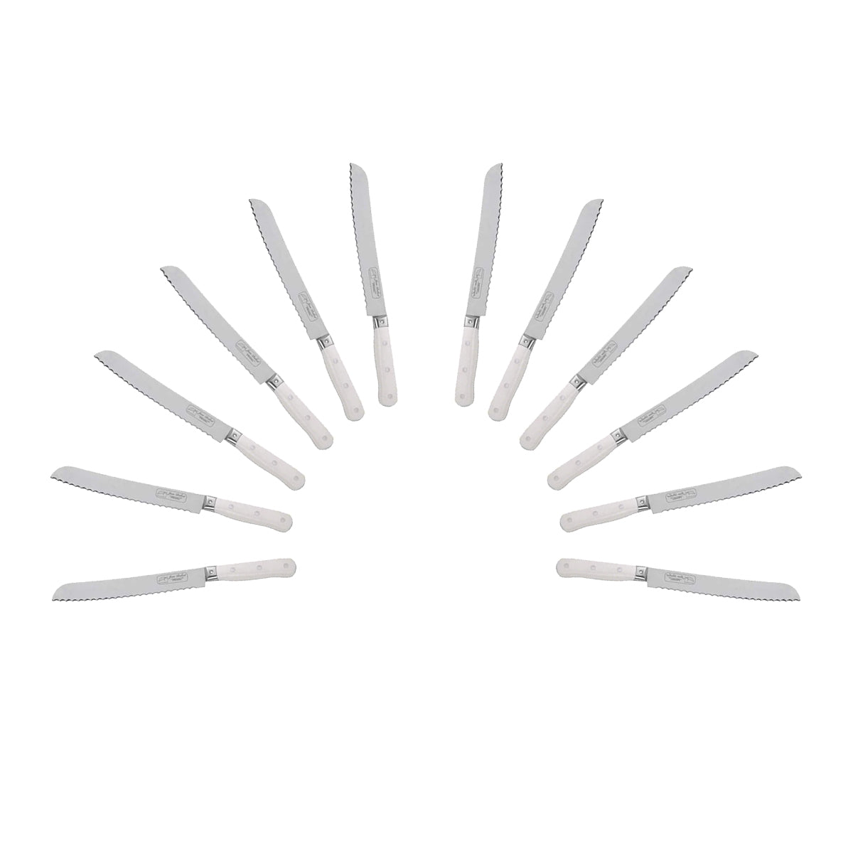 (D) Bread Knife Laguiole French Hand Made Pradel, Vintage (12 PC White)