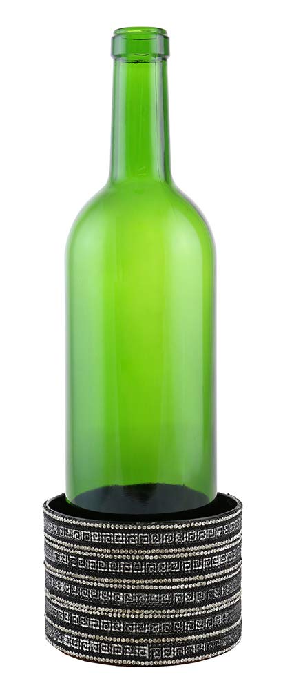 (D) Decorated Wine Coaster, Silver and Black Crystal Strips, Wine Bottle Holder