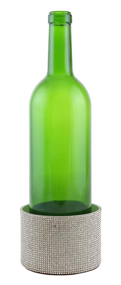 (D) Decorated Wine Coaster, White Crystals, Wine Bottle Holder