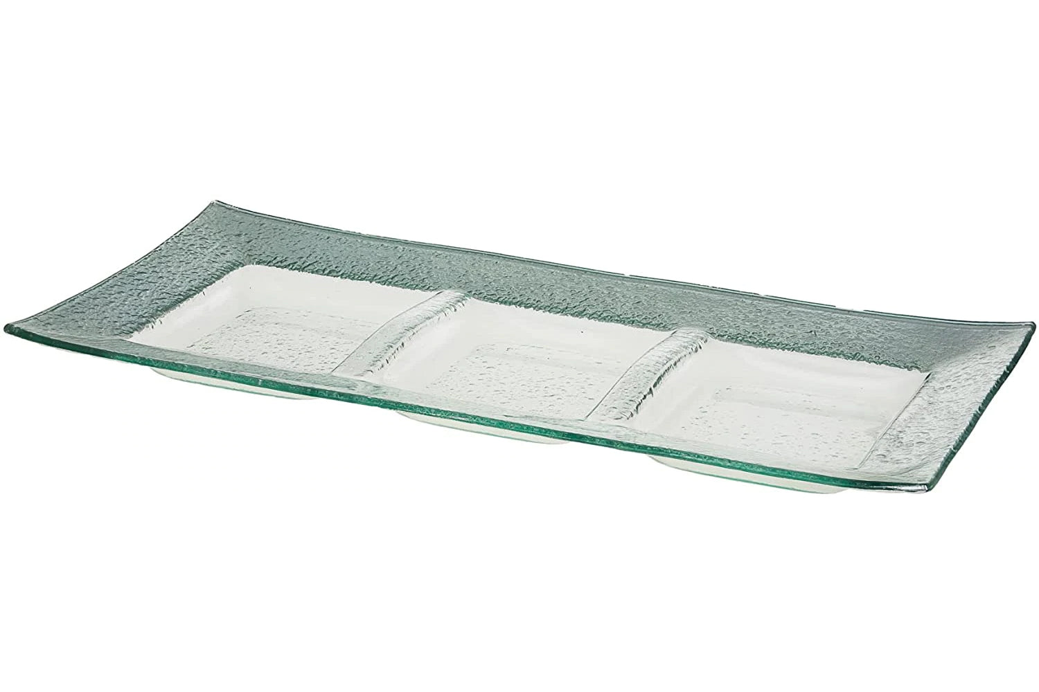 (D) Judaica Glass Rectangular Tray with 3 Sectionals 18x8.5'' (Silver)