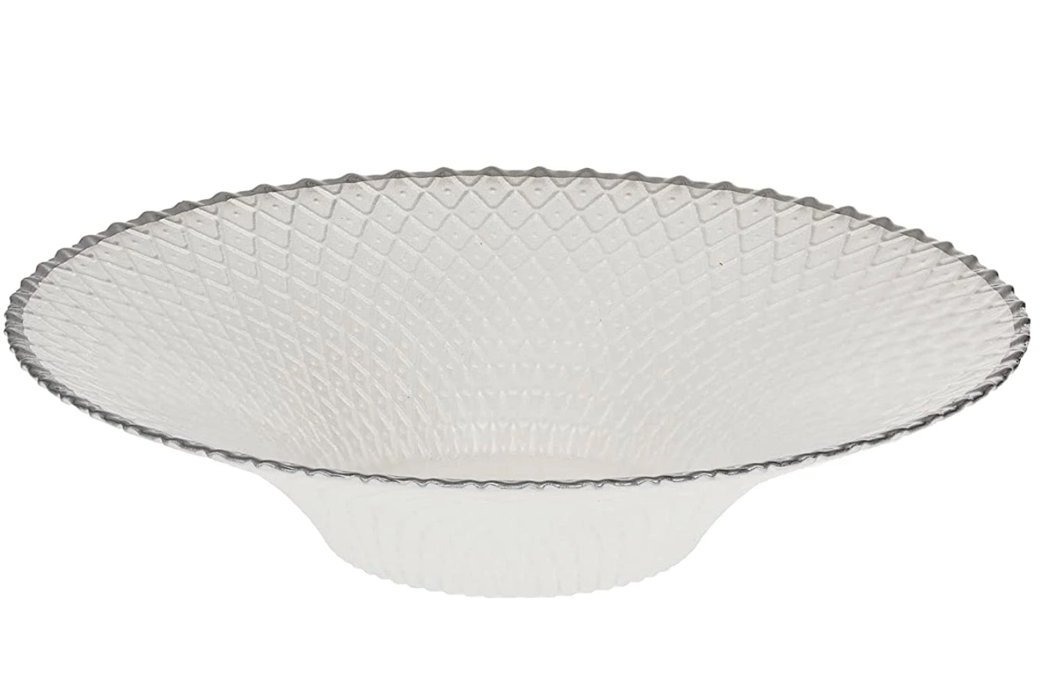 (D) Judaica Round Glass Bowl White with Grey Edge 12.5 D, Centrepiece