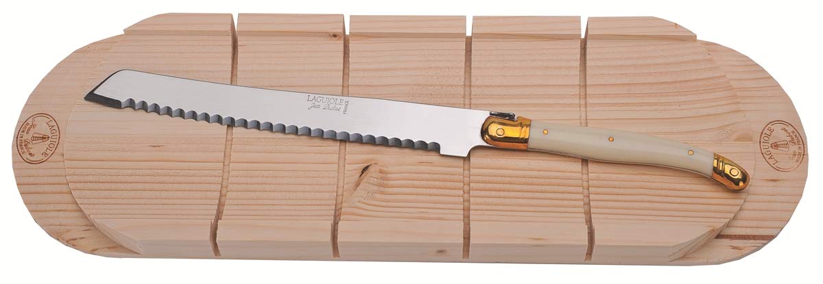 (D) Laguiole French Ivory Bread Knife with a Baguette Board 11.75 Inch, Vintage