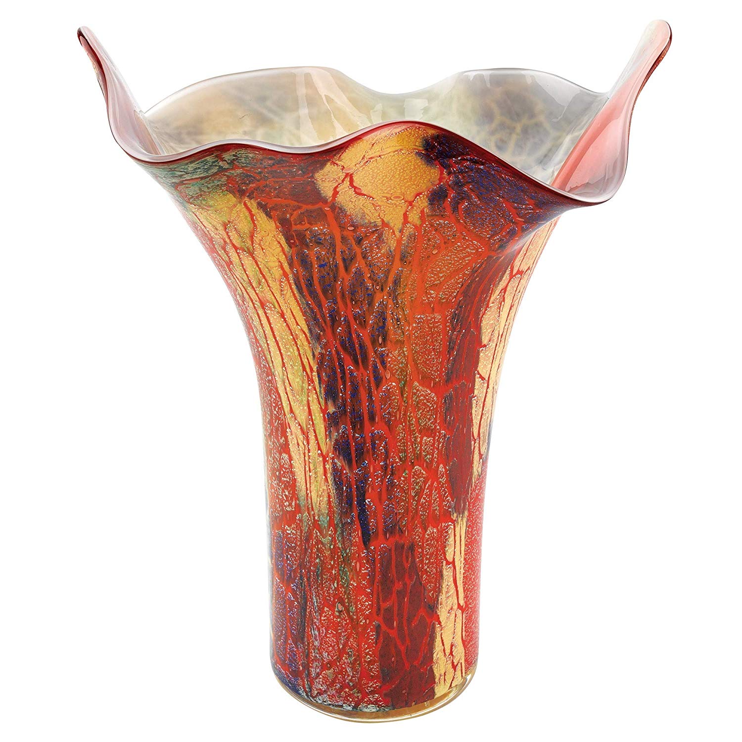 (D) Handcrafted 'Firestorm' Murano Style Art Glass Decorative Napkin Flower Vase 17", Murano Style Artistic Colorful Design