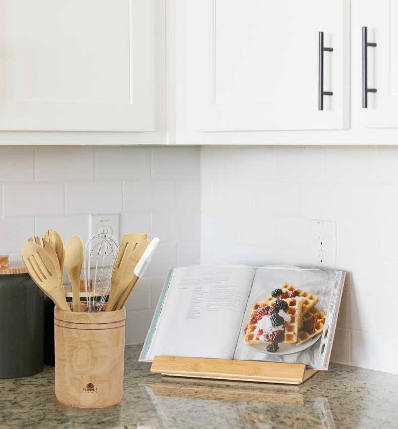Having a place to store your kitchen utensils can be the difference between a messy kitchen and an organized one. Nice and smooth and easy to clean. The mix of both functionality and natural view into one great cooking utensil that will last a lifetime!