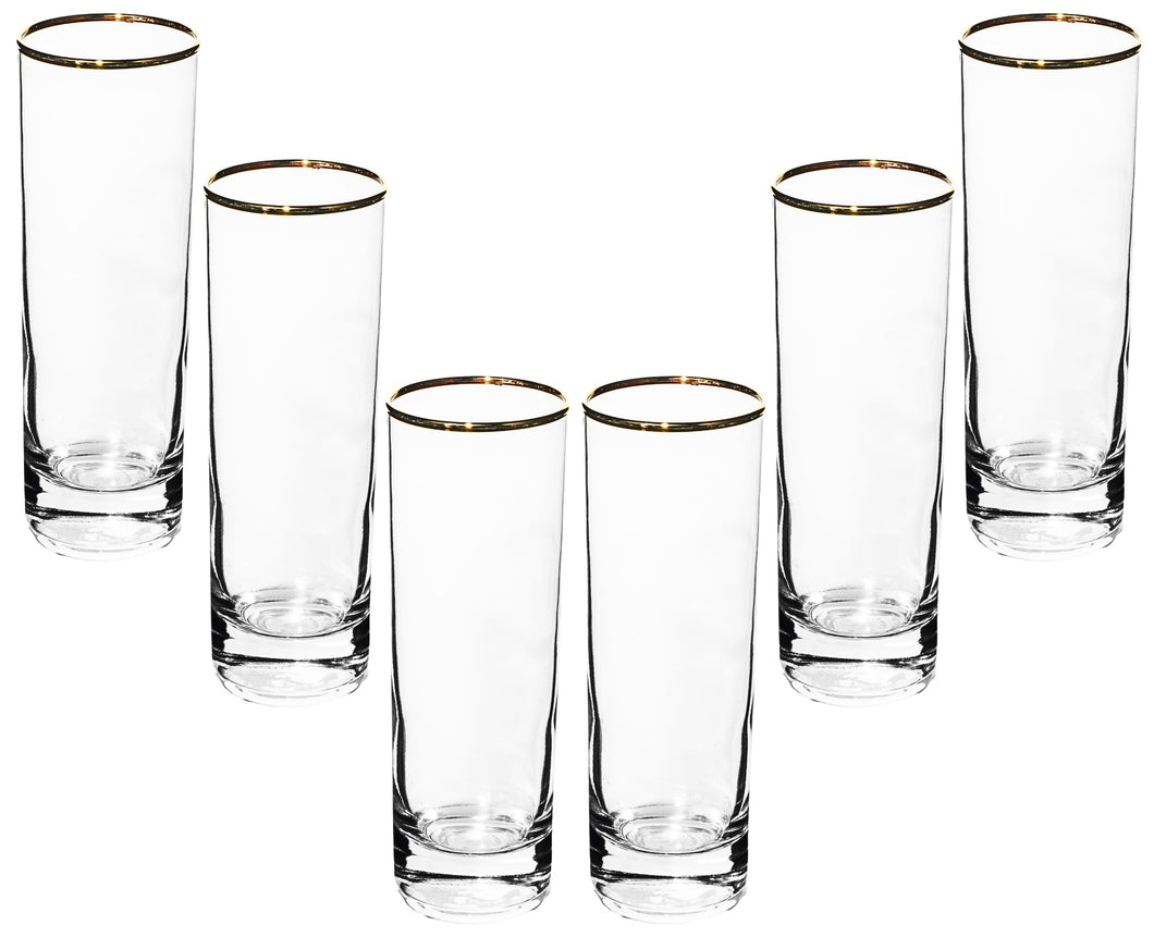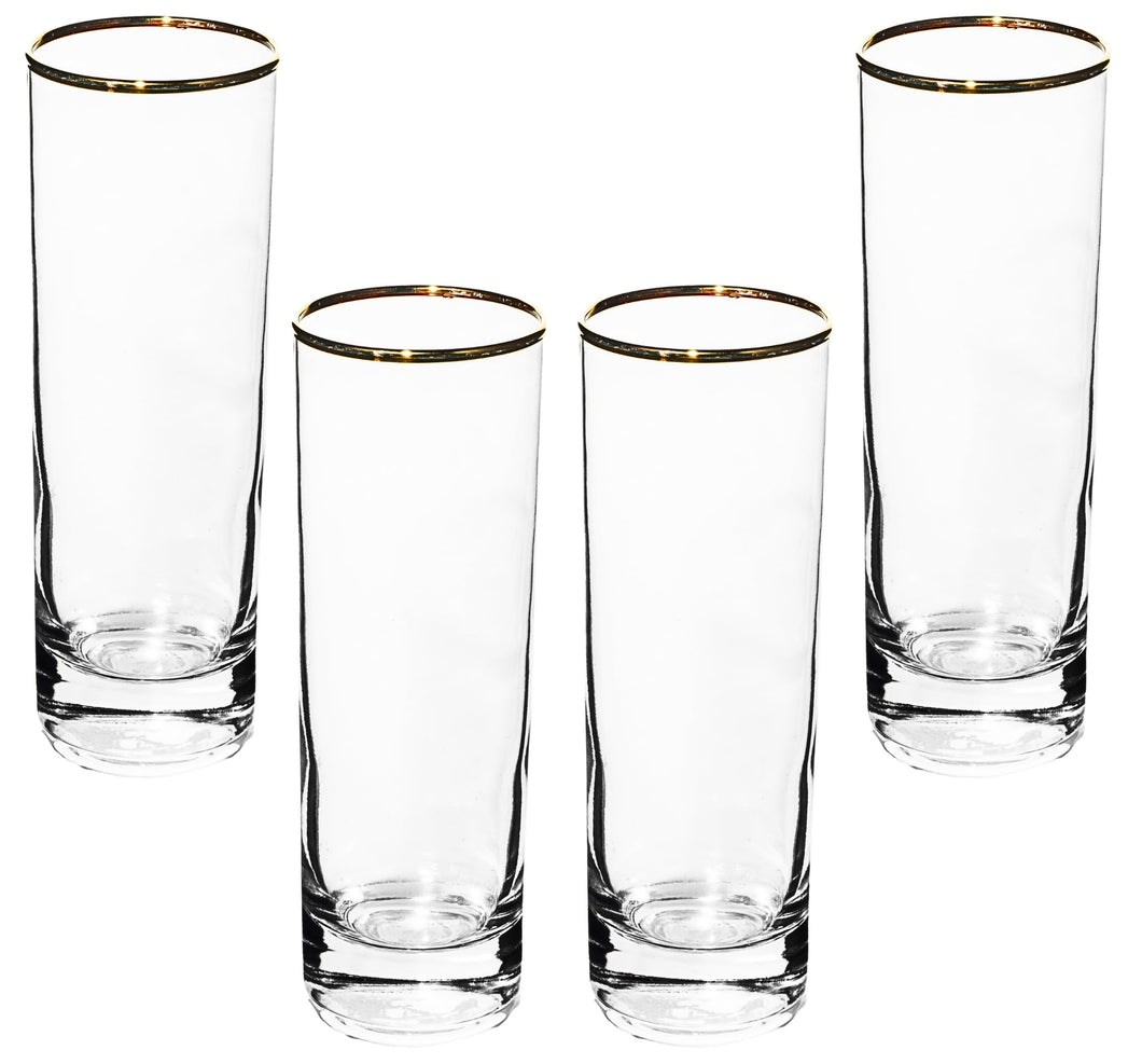 Upgrade your kitchen set, bar, or party essentials with this versatile and stylish set of highball glasses. Their elegant gold rim and sturdy design make them a thoughtful gift for weddings, housewarmings, or any special occasion.