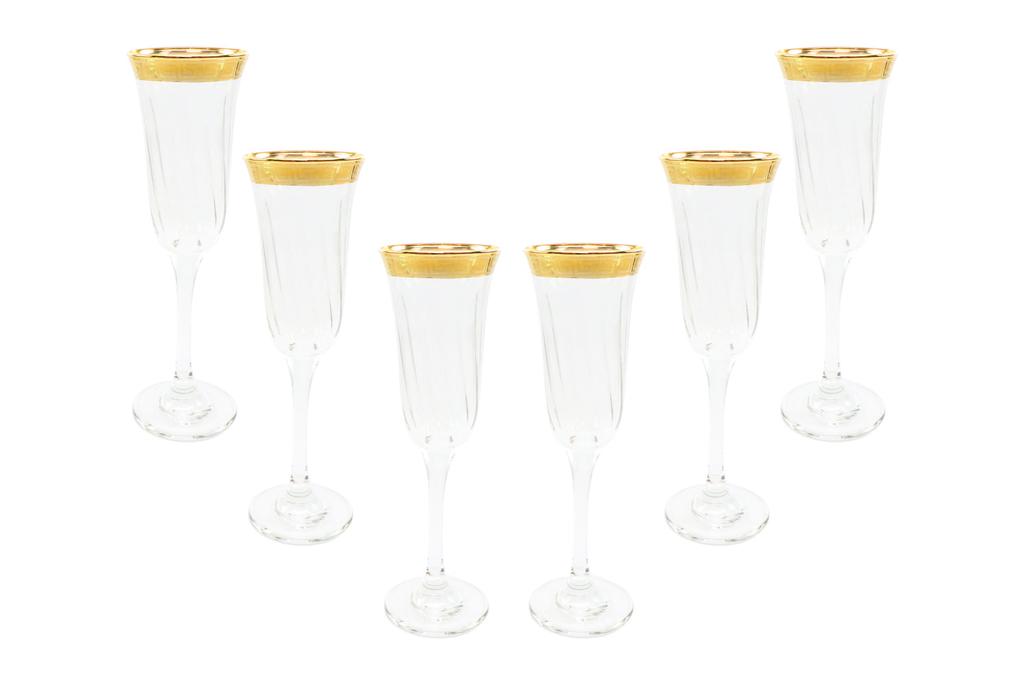 Italian Collection Crystal 24K Gold Rim Champagne Flute Glasses, Vintage Pattern