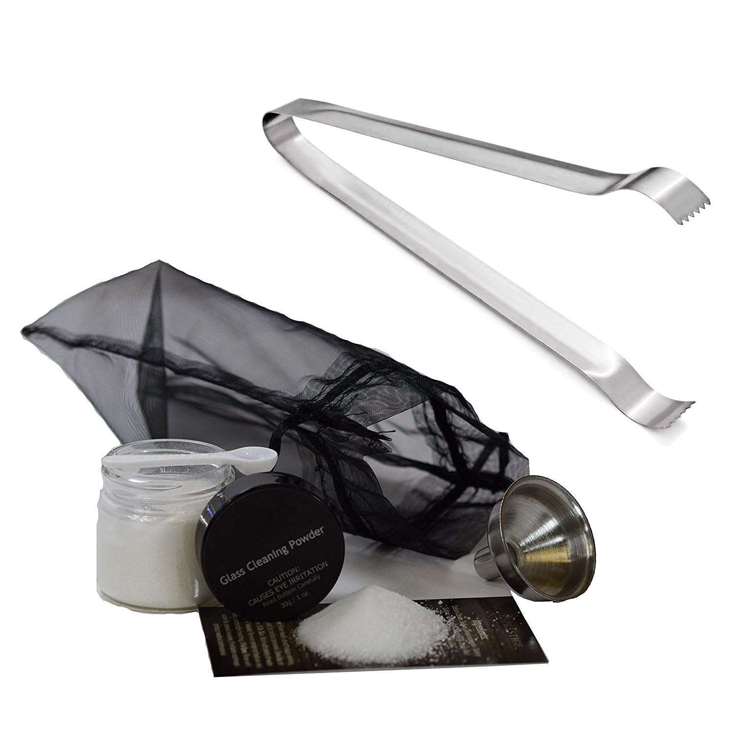 - Set Includes: 2 X Diamond Glasses, Tongs, Whisky Stones, Cleaning Kit, Funnel; Funnel received may vary in size and shape