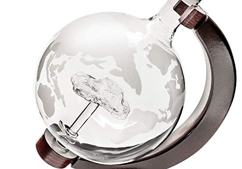 - Mouth-Blown Globe Decanter with Car Inside, Wooden Base & Elegant Airtight Lid