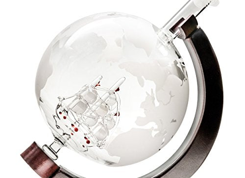 - Mouth-Blown Globe Decanter with Ship Inside, Wooden Base & Elegant Airtight Lid
