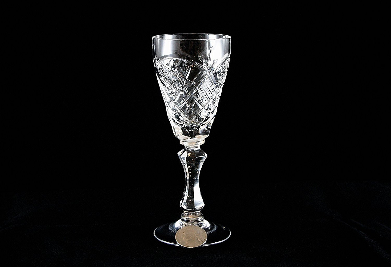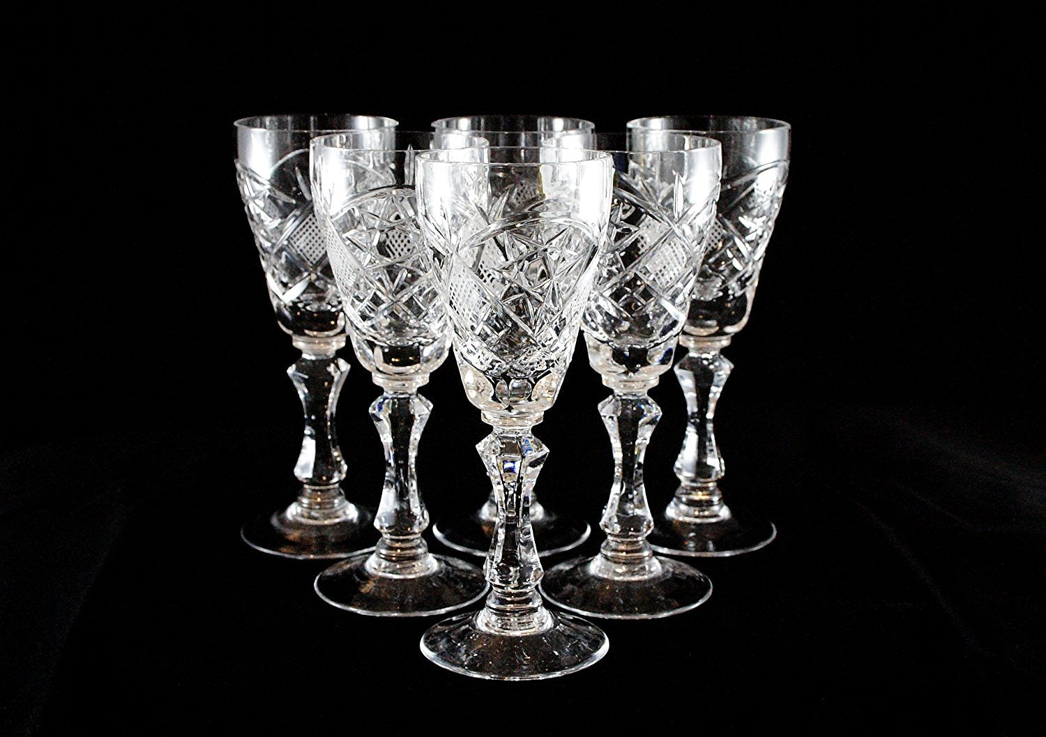 Set of 6 Vintage Cut Tulip Shaped Crystal Glasses on Stem Tequila/Vodka/Liquor 2 oz