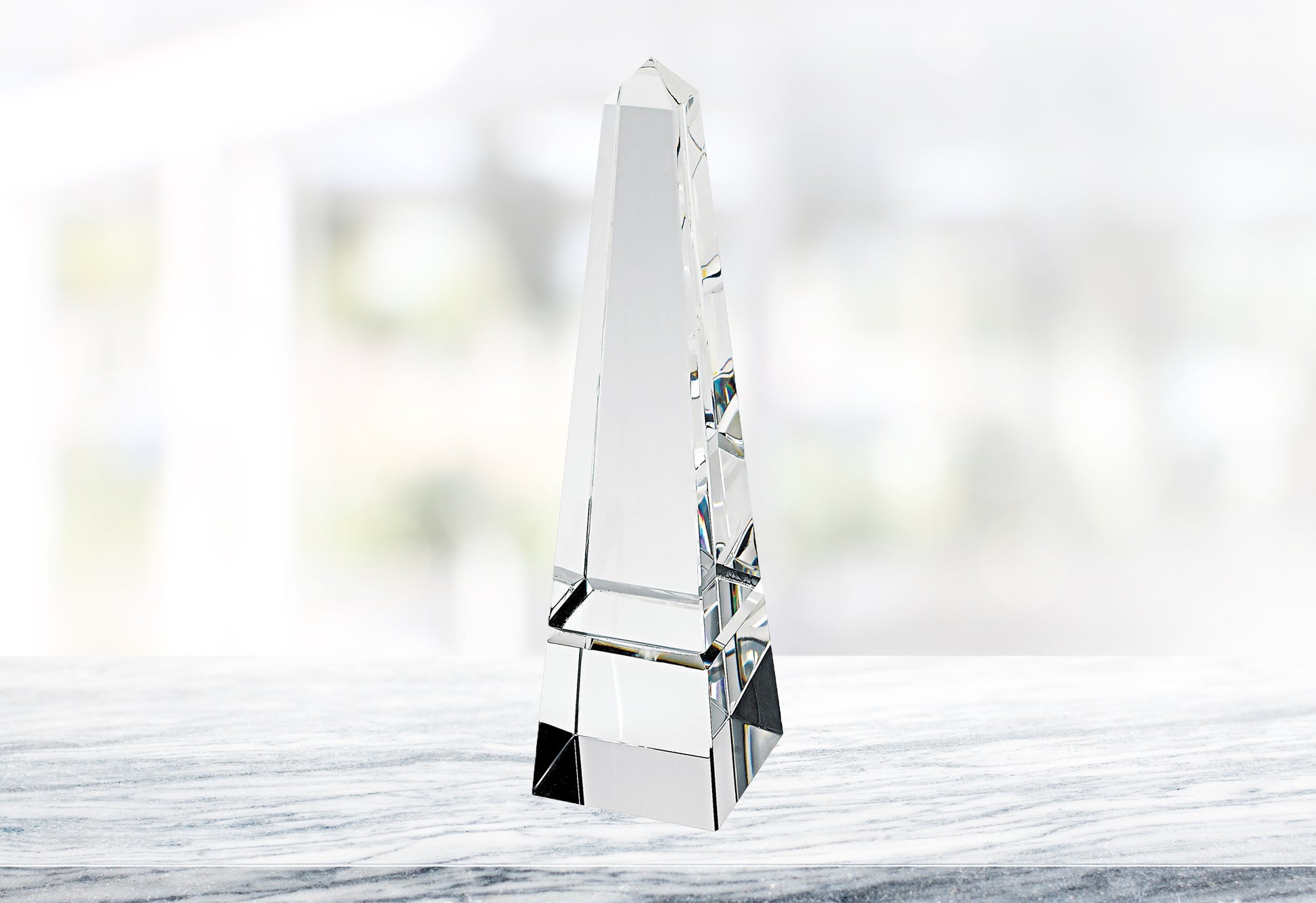 (D) European Handcrafted Crystal Glass Obelisk Centerpiece Figurine 12"H