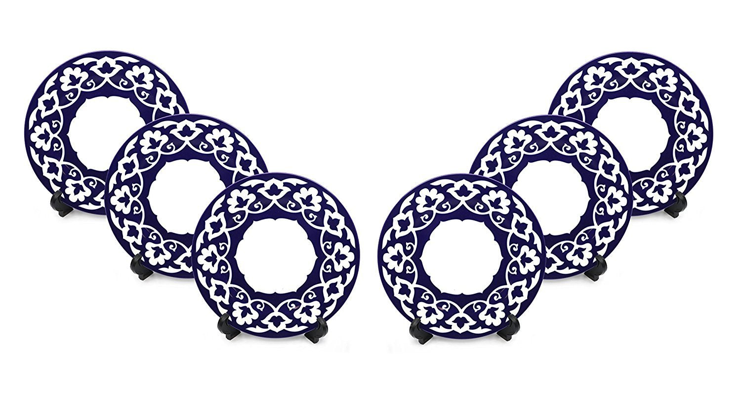 Royalty Porcelain 6-pc Russian Fine Blue Floral Set of Plates for 6 (Salad)