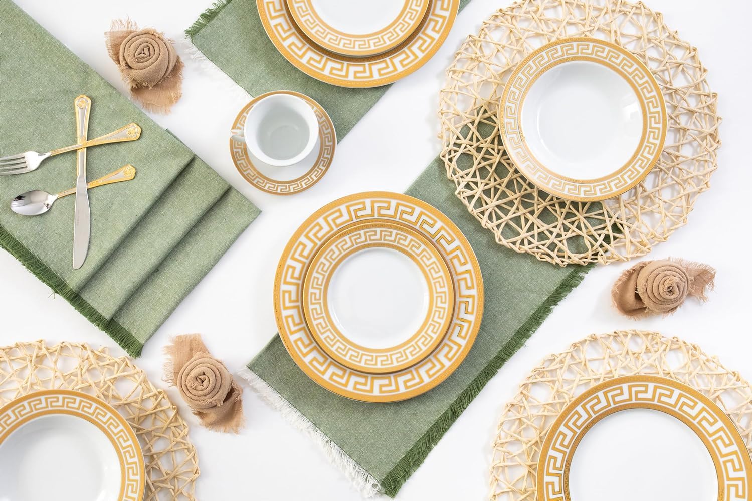 20 Piece Greek Key Gold Decorated Dinner Set for 4, Fine Porcelain