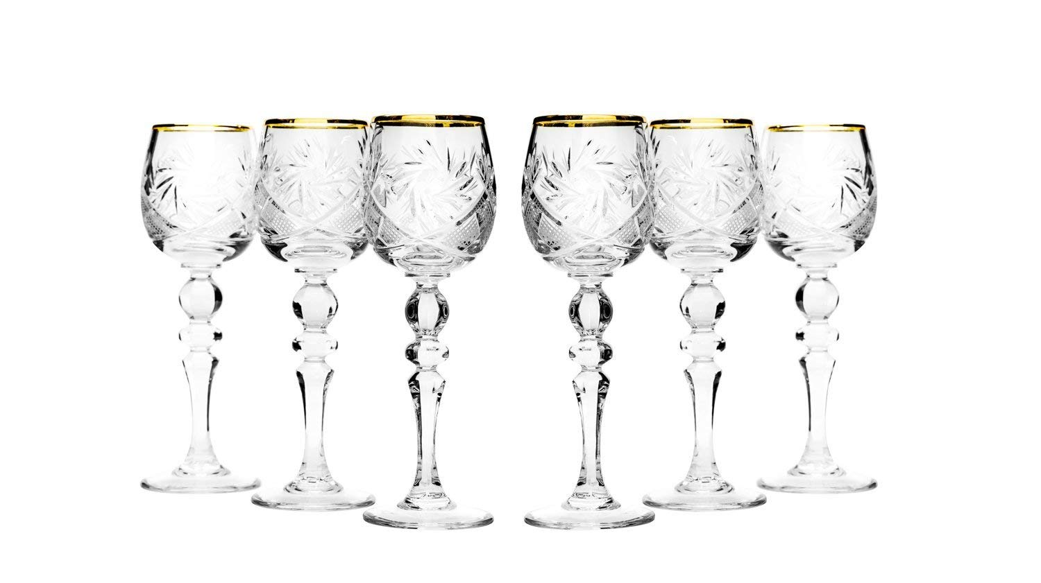 Set of 6 Vintage Cut Crystal Shot/Liquor Glasses with a Gold Rim on a Stem 2 oz