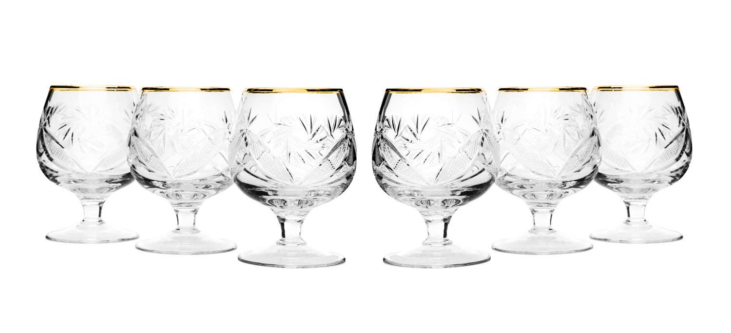Set of 6 Vintage Crystal Cognac Snifters With Gold Rim 7 oz